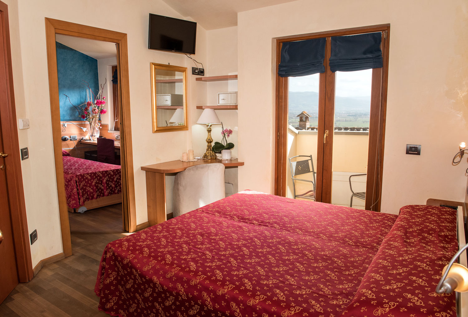 All comforts for a pleasant stay: private bathroom, hairdryer, telephone, TV with satellite channels, air conditioning, safe, minibar, free Wi-Fi, wake-up service, baby cot service.